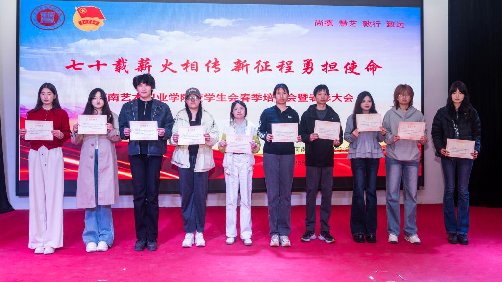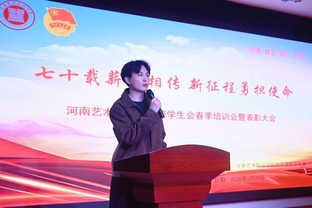为深入学习贯彻党的二十届四中全会精神,推动学生会工作走深走实,强化青年学生骨干责任担当与服务效能,2026年3月26日,河南艺术职业学院校学生会在1A207教室召开2026春季培训会暨表彰大会,主席团及全体学生会成员参会。
