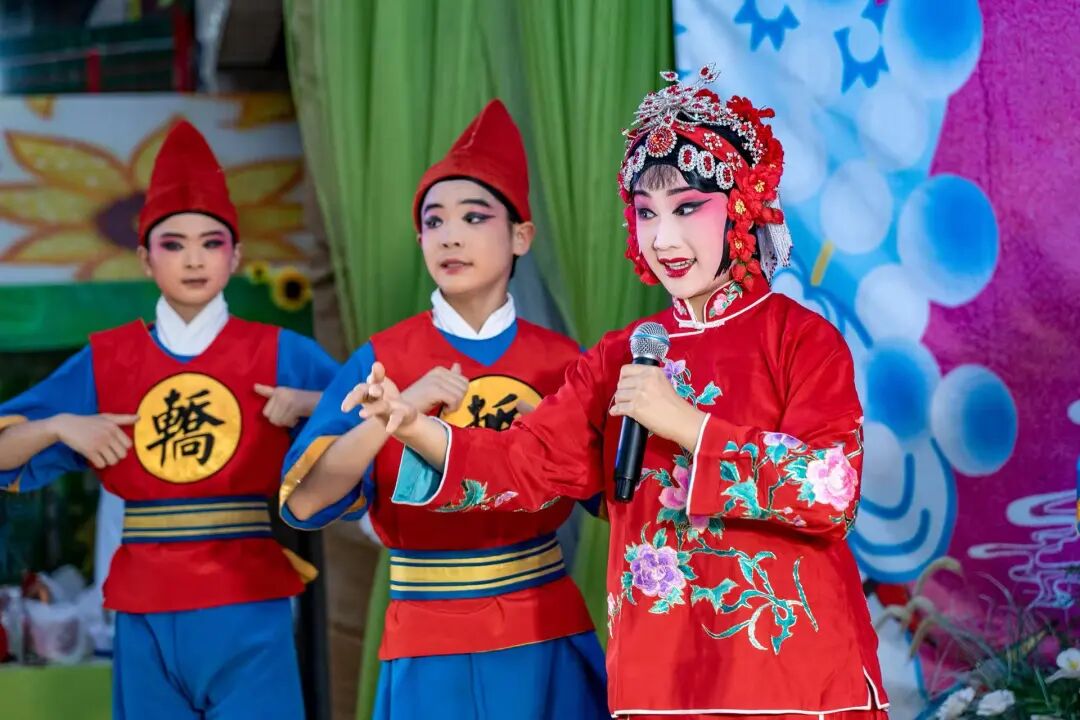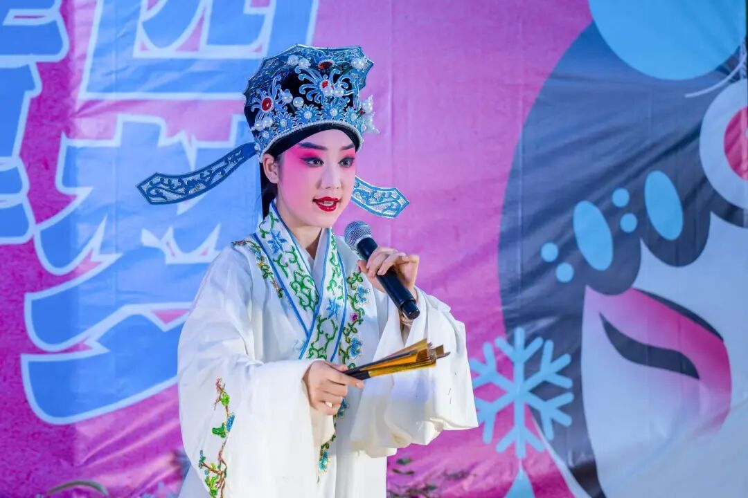 活动现场,传统剧目《穆桂英挂帅》《打金枝》《风流才子》轮番登台,唱念做打引人入胜,水袖翻飞之间尽显千年戏韵。孩子们在演员引导下穿戴戏服、描画脸谱、学习唱腔,一幕幕“入戏”的瞬间在镜头与记忆中定格,戏曲之美从“观看”走向“体验”,传统文化在童心中悄然扎根。